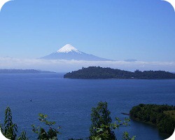vista del volcán Osorno y diversas ciudades que se